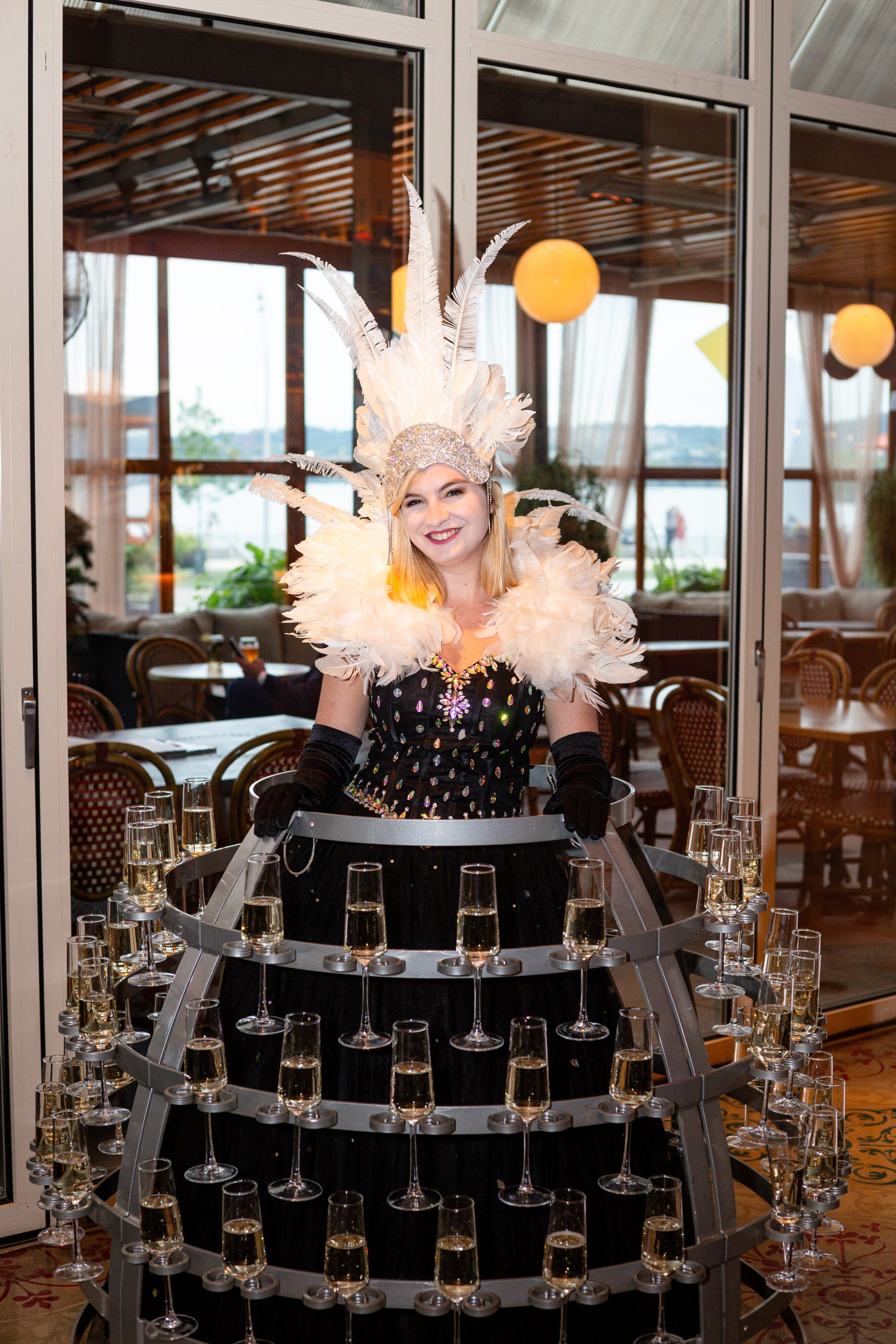 Guests were welcomed in style by a “Champagne lady” from Bialeks Music holding 60-plus glasses of bubbly around her skirt. After enjoying a glass, attendees were able to receive their signature Washingtonian faux covers.
