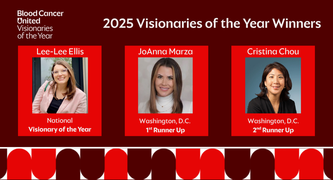 Visionaries of the Year (VOY) is a 10-week philanthropic competition for leaders in the DMV area to raise mission-critical funding for Blood Cancer United in honor of local blood cancer survivors. Funds raised go directly to Blood Cancer United’s groundbreaking research, patient support programs and advocacy efforts.
